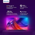 A plataforma Google TV proporciona acesso inteligente a todos os streamings favoritos, com recomendações personalizadas e controle por voz via Google Assistente. Gamers encontram a experiência definitiva com HDMI 2.1, 120Hz nativo e ALLM para jogos sem lag em consoles PS5/Xbox Series X.